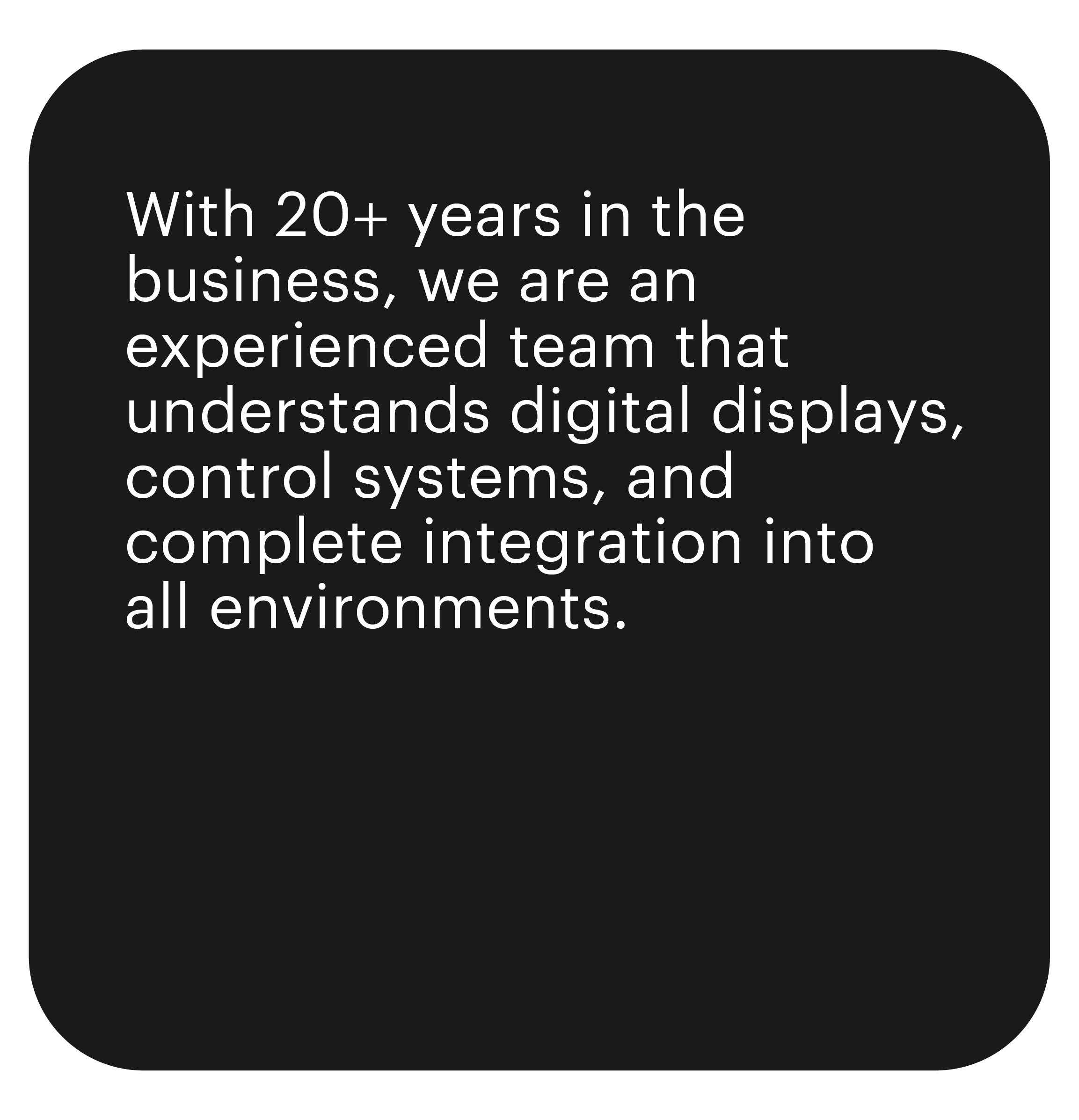 — from Sports and Entertainment venues, Times Square, corporate campuses, and the most prestigious lobbies in America. It’s our understanding of the experience and program that allows us to effectively advise and manage the full process, ensuring the delivery of a flexible, cost effective, and complete solution.