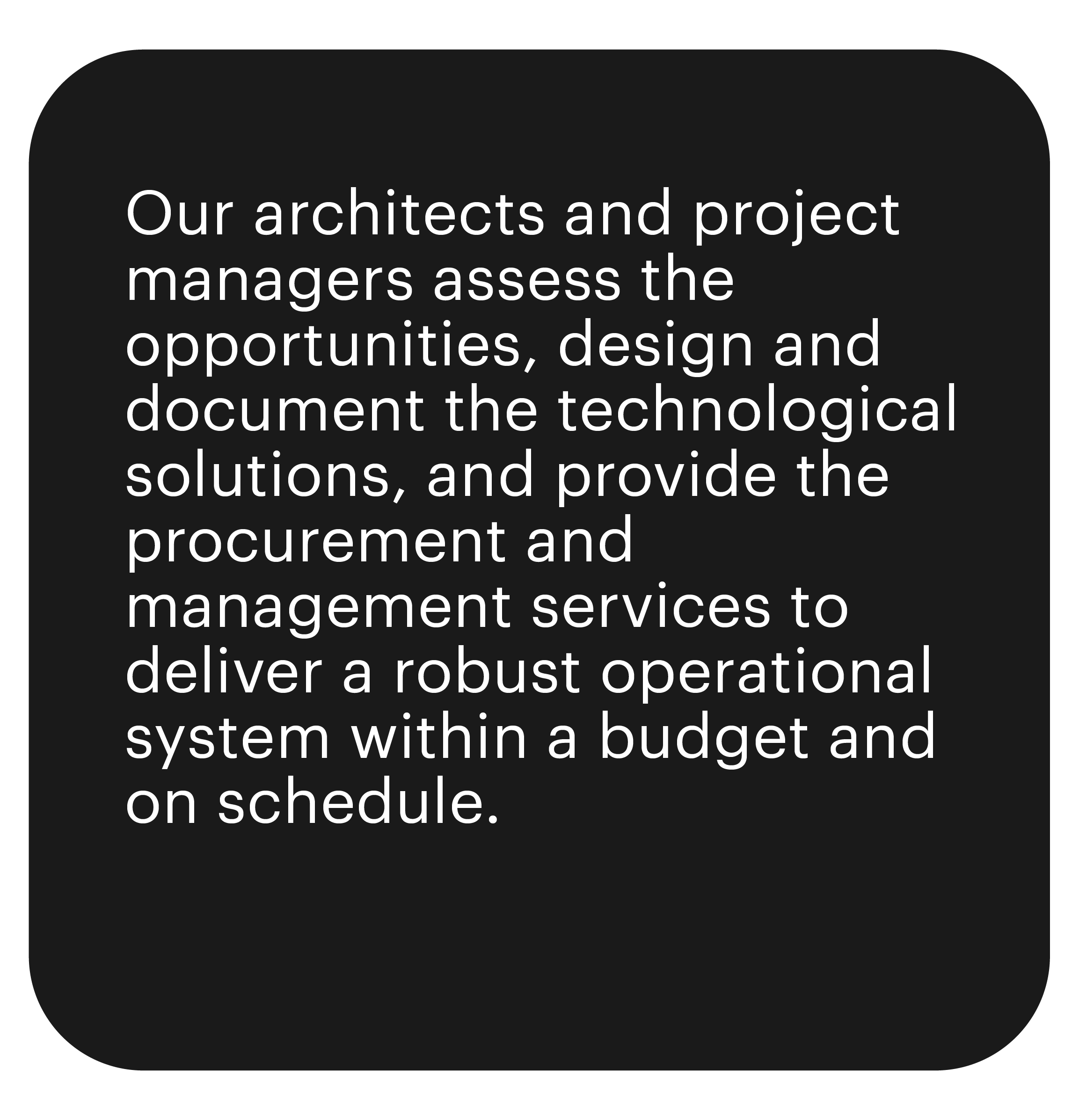 Our knowledge and skill sets enable us to advance all aspects of the bigger picture, bringing value to your project.